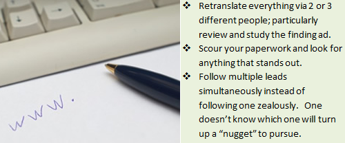 One can research whatever information can be obtained regarding the finder. While there is no real pattern for which clue may lead you somewhere, it is not unusual for the finder to have some bit of truth to an adoptive child’s story. Sometimes the finder is actually a friend of a birth family who actually simply delivered a child to the orphanage, or may have some other more distant connection or knowledge of the birth family. Periodically the finding ad may provide the address of the finder, or give his/her profession, etc. One can also research this type of lead via the internet, such as locating the finder’s home, place of employment (local family planning office can be an intriguing profession for a finder, which does occur). These small pieces can be pulled together to create some sense of your possible origins, or at least interview people who knew or saw you in the earliest days. This can lead to actual clues of the truth.